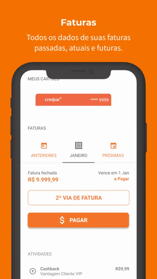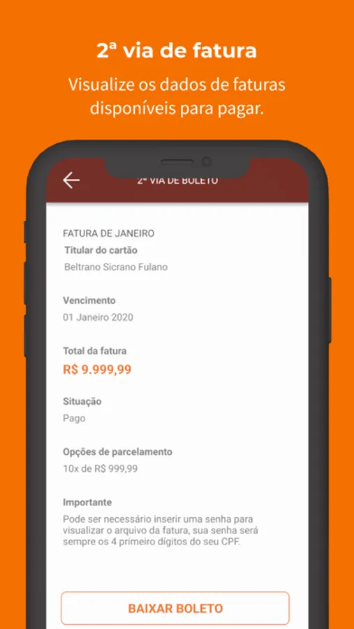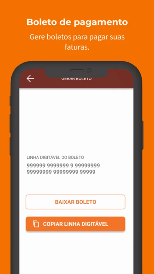 • Ver detalhes das faturas e gerar boleto para pagá-las;
