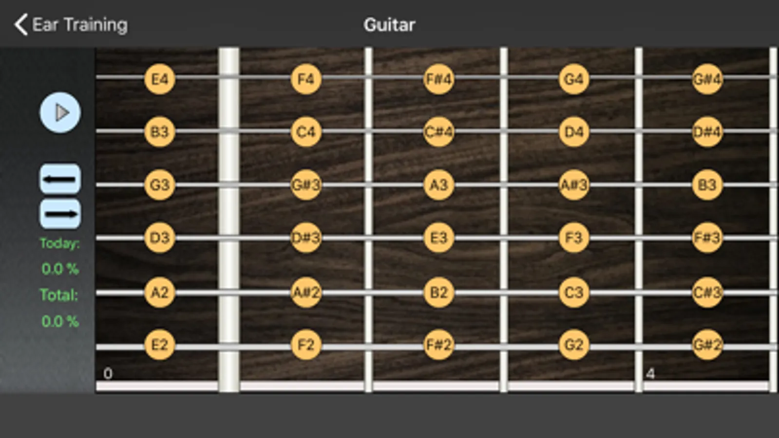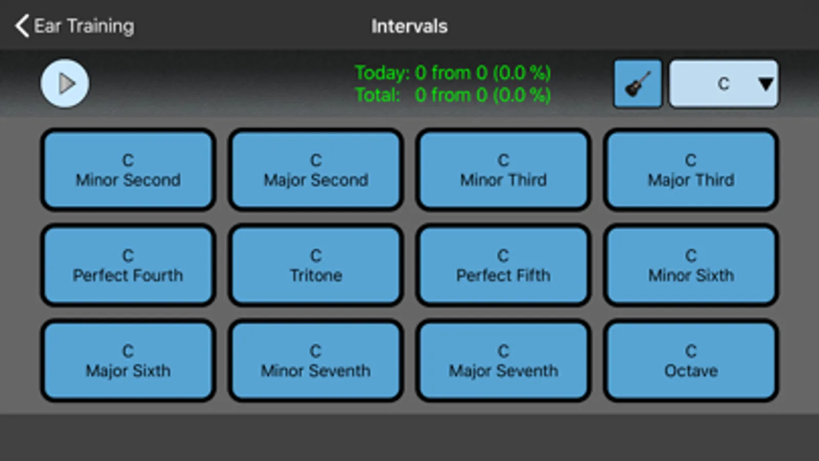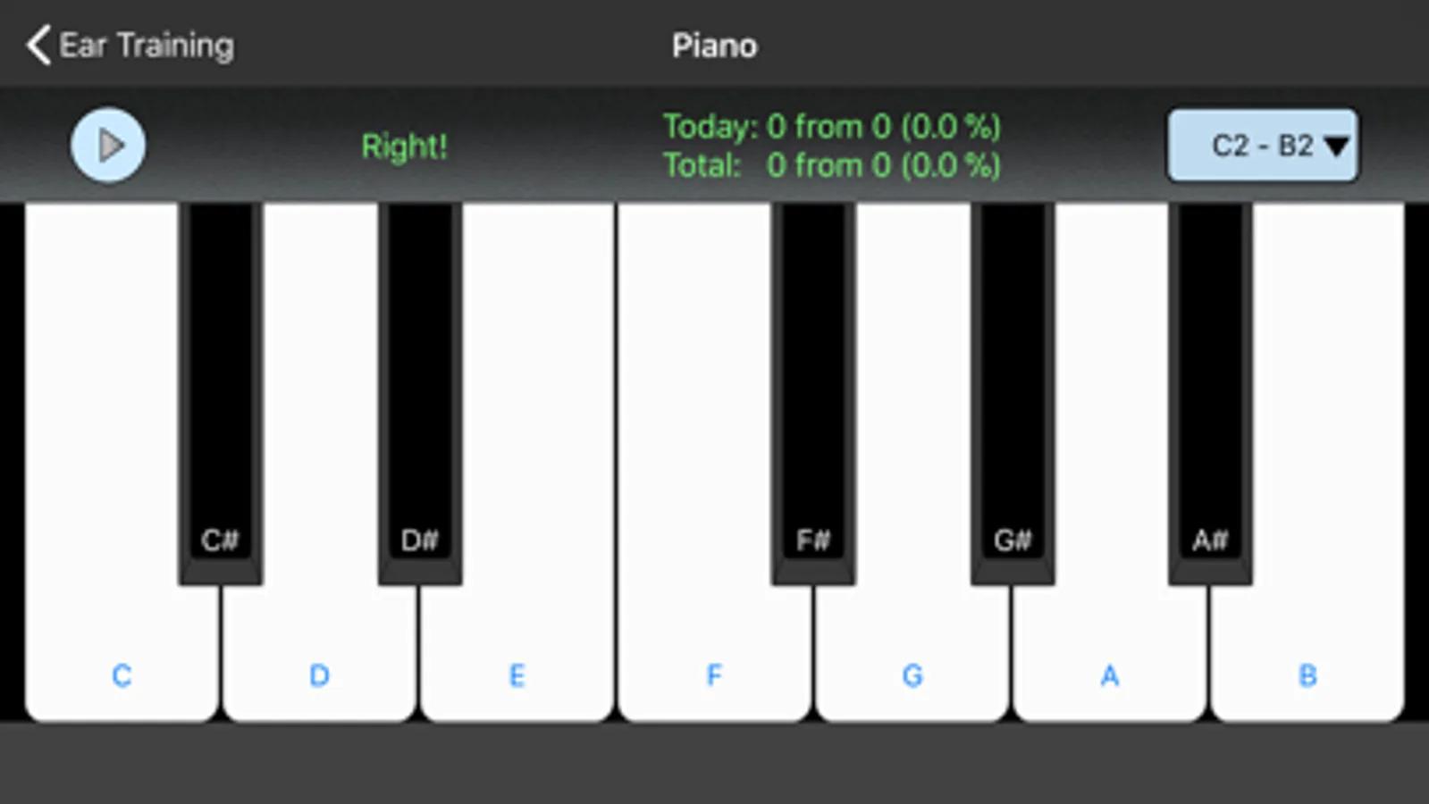 Ear Training app has simple intuitive interface, shows the percentage of correct answers for today and totaly. Also it has simple mode for beginners. Ear Training app has piano mode, guitar and bass modes, chords, scales and intervals modes.