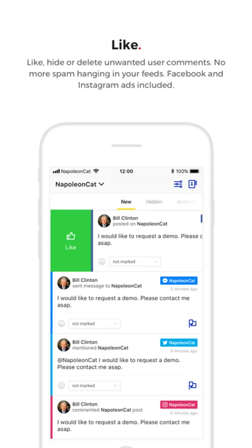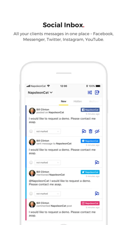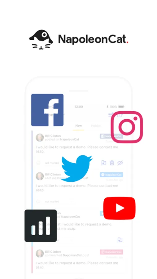NapoleonCat is a social customer service and analytics platform that helps you communicate with your customers on Facebook, Messenger, Instagram, Twitter and YouTube. Now you have all your important social media channels in one place.