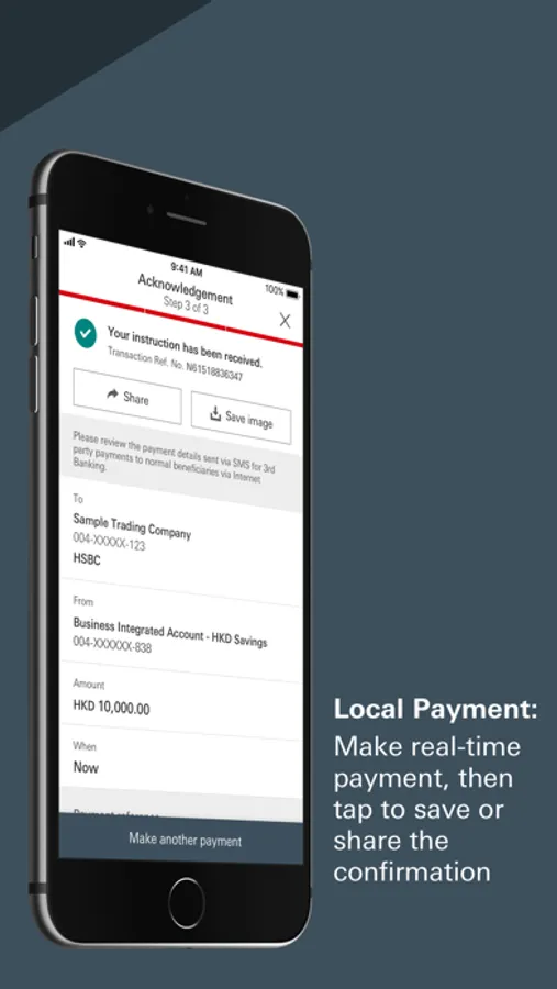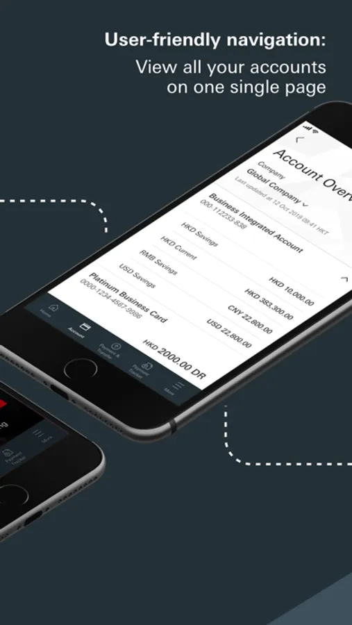 • Simpler and faster payment: You can now make local and international payments on the go, and make it even easier by using Mobile Security Key instead of your physical Security Device. If your payee is in Hong Kong, you can make payments using their mobile number, email address, FPS ID or by scanning a QR code. Once completed, you can tap to save or share a copy of the payment confirmation