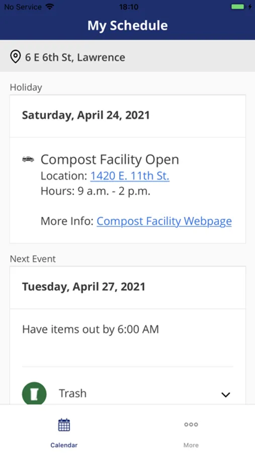 Garbage and recycling schedules and reminders for City of Lawrence. View your garbage and recycling schedule and receive collection notifications all from within this app.