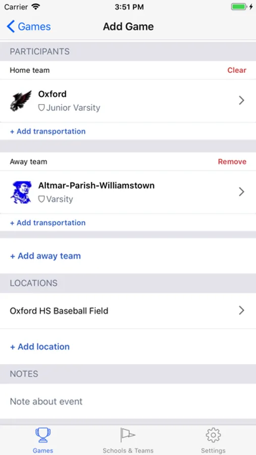 ScheduleGalaxy helps schools save time and reduce expenses by facilitating game scheduling for Athletics Directors and coaches and providing up-to-date game information and directions for team members and parents.