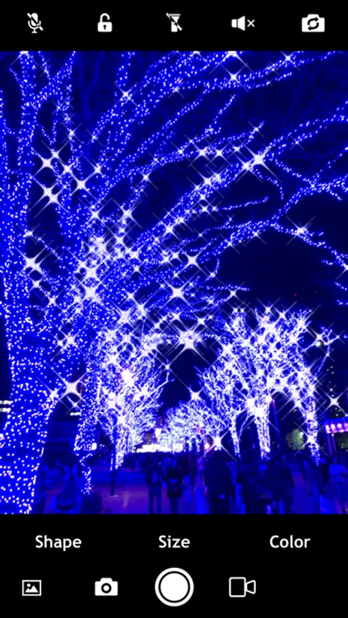 Sparkle Cam adds sparkling lens flares in your camera in realtime. And you can also add glitter objects to your photos and videos in your photo album.
