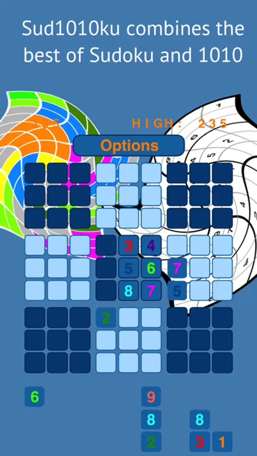 Place numbered blocks in 1010 style, while making sure the numbers comply with Sudoku rules.