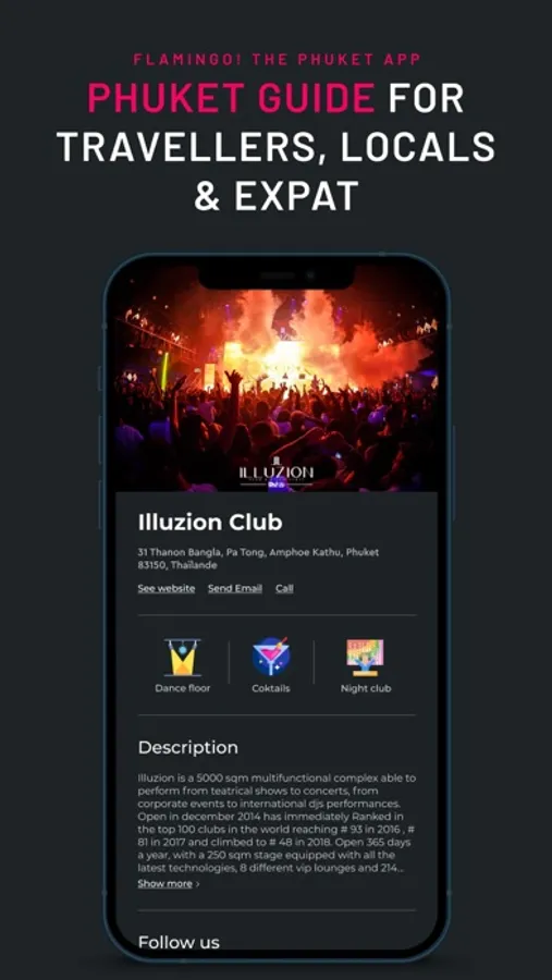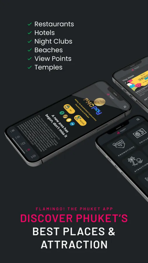 The users of FlaminGO! App can access to a wide array of services and offers. Practically all you’d ever need to know about your visit or holiday to Phuket – you’ll find it here in this directory. Daytime and nightlife activities, accommodation, restaurants, shopping, sports activities, real estate agents and offices, health and beauty services, public services - in this directory you’ll have Phuket in the palm of your hand in one directory.
