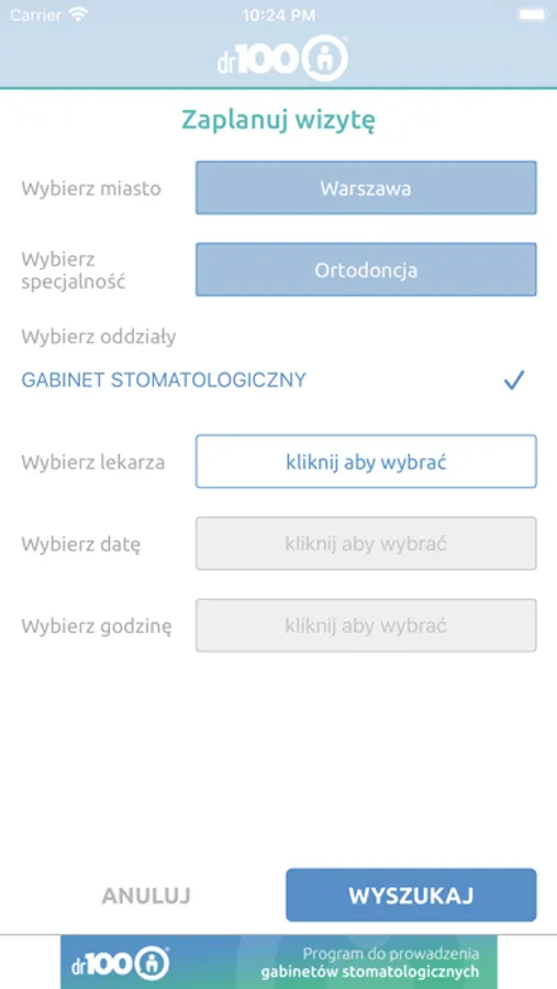 Dr100 Pacjent to praktyczne rozwiązanie umożliwiające zdalne umawianie wizyt. Pobierz aplikację mobilną na swój telefon, by szybko i wygodnie rezerwować wizyty w dogodnym dla Ciebie terminie!