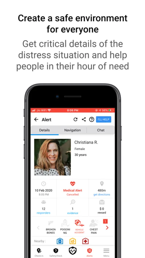 Overwhelming Force of Response: GuardOn notifies dozens of Responders in the vicinity of distress. Through GuardOn App, they can quickly communicate, collaborate and help the person under distress. This keeps the Responders safe and makes the rescue safe, quick and easily possible.