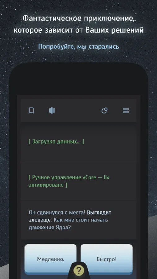 Вы — оператор межгалактической Службы спасения. На Ваш пульт поступает загадочный сигнал от корабля, который невозможно идентифицировать. Судно терпит бедствие, экипаж в опасности, и только Вы можете их спасти.