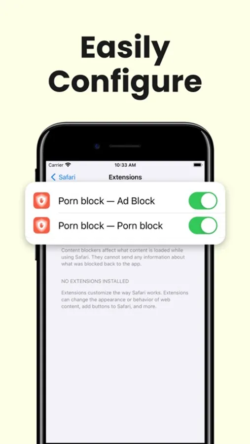 • Users do not need to register or create an account to use this app. Once the app is installed on your phone/device, simply enable it from Safari settings to content blocker.