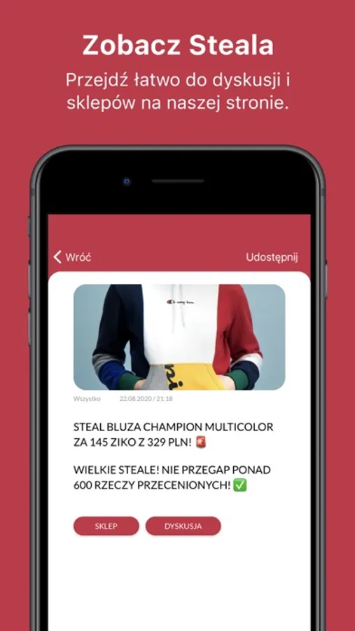 Steal alert to aplikacja dzięki której kupisz swoje ulubione rzeczy typu streetwear dużo taniej! Już teraz otrzymuj streetwearowe promocje prosto na swój telefon. Każdy steal jest starannie wybrany przez naszych zawodowych poszukiwaczy!