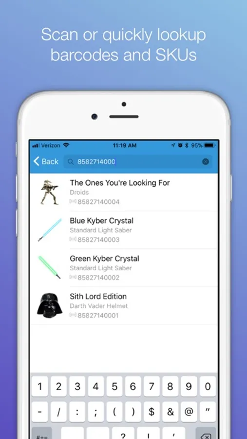 * Quickly search or scan SKUs or barcodes for inventory checks