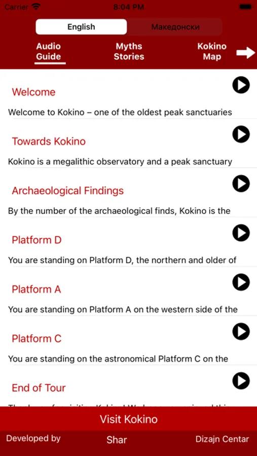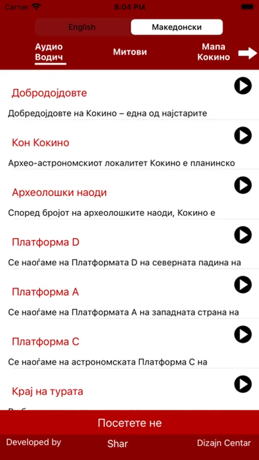 · 10 minutes of high quality audio guidance in English and Macedonian accompanied by beautiful photos of Kokino (written by the archeologist who uncovered the site in 2001);