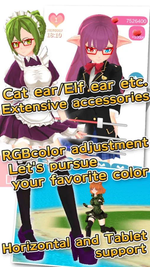 · Change clothes so that you can enjoy a wealth of combinations such as costumes, head accessories and attachment and detachment of beast ears!
