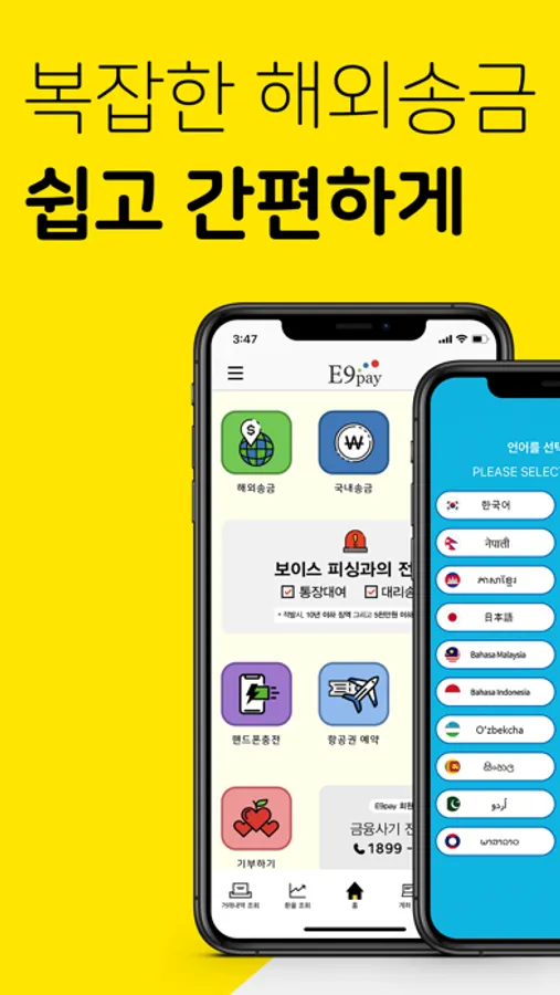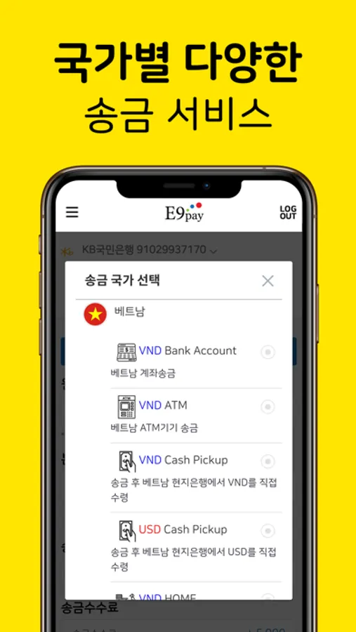 E9PAY(E9VISA+PAY)는 200만 외국인을 주 대상으로 해외송금, 거래내역 조회,