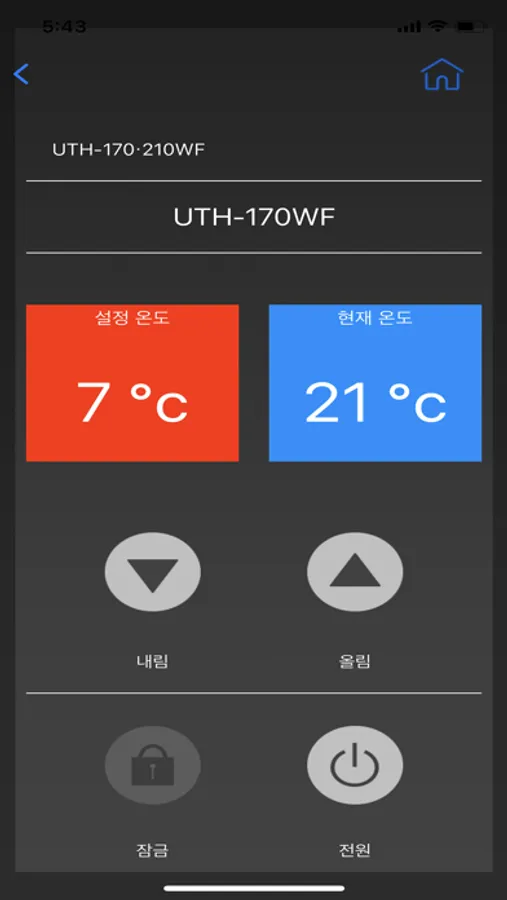 UTH-170‧210WF 컨트롤러를 아이폰 앱을 이용하여 원격으로 온도 조절 및 전원 ON/OFF 제어 할 수 있습니다.