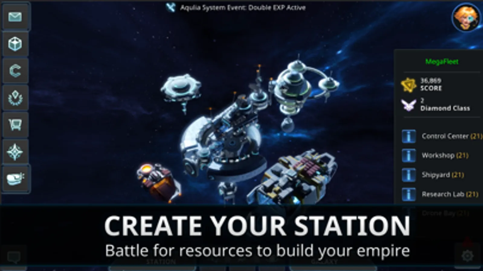 Join a Corporation, declare war or forge alliances, bombard outposts and capture sectors. Build defense hangers and shield generators to defend, or just go for extra resources and build some asteroid mines.