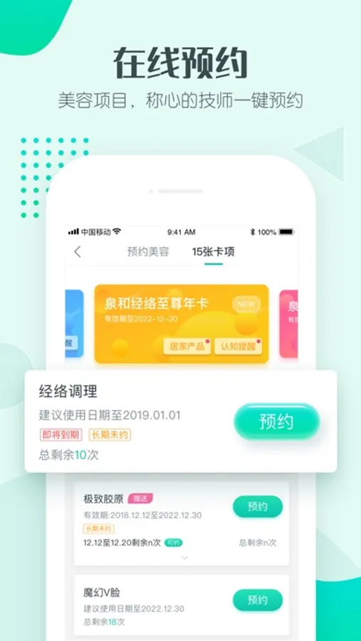 【在线预约】美容项目一键预约,项目完成进度一目了然。