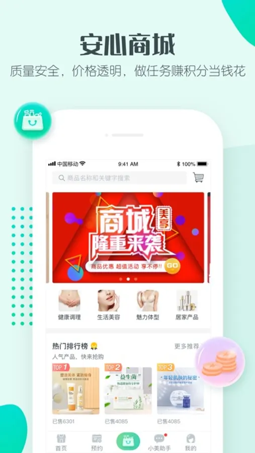 【商城】丰富的美容项目和会员任务,赚积分,兑换当钱花!