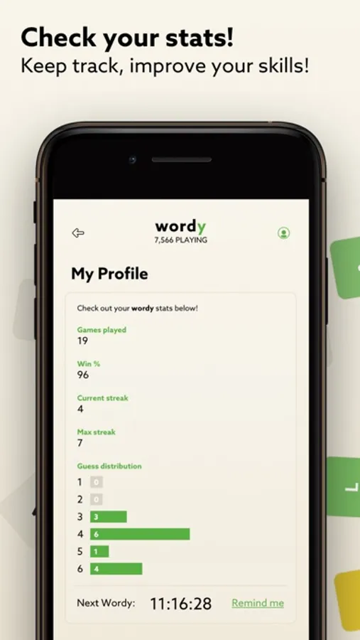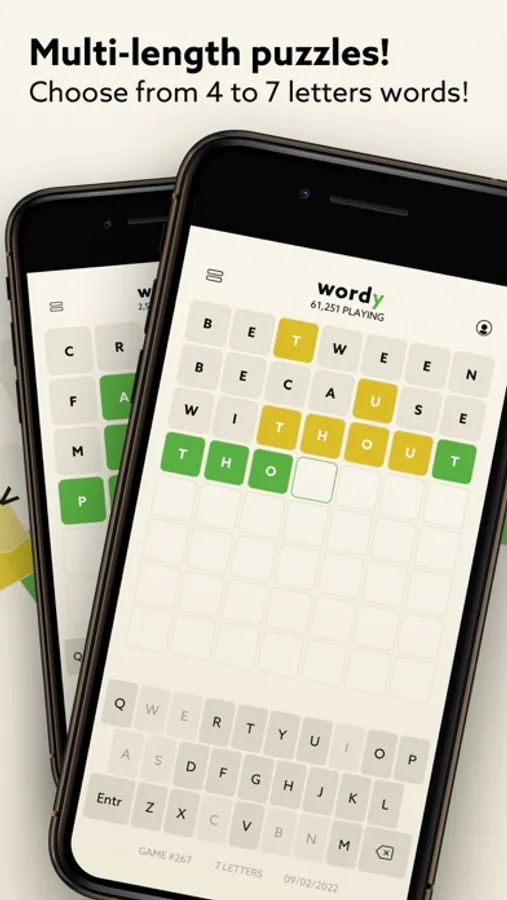Find out who is best at word puzzles by playing Wordy! A brand new word puzzle to test you and your friends every day. Can you guess the daily word before running out of attempts? Guess words to find the letters and their position in the answer, then guess the answer! Share your results and let your friends know how you did!