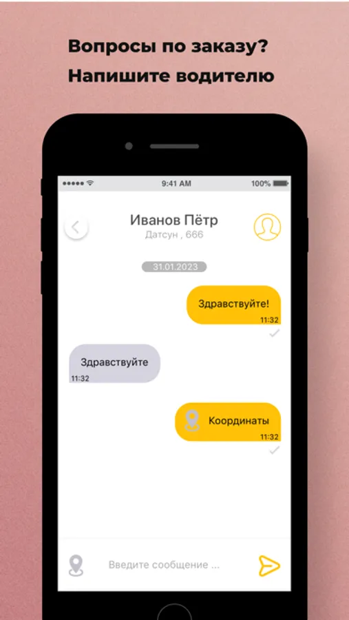 Спросите в чате приложения, где он находится, или отправьте ваши координаты с помощью одной кнопки.