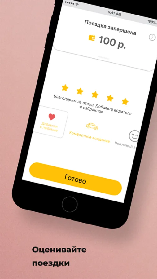 Оценивайте поездку с помощью готовых шаблонов. Занесите водителя в “Избранные”, если понравилась поездка.