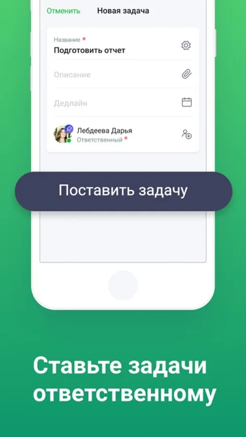 Распределяйте задачи между сотрудниками и получайте уведомления о «горящих» сроках.