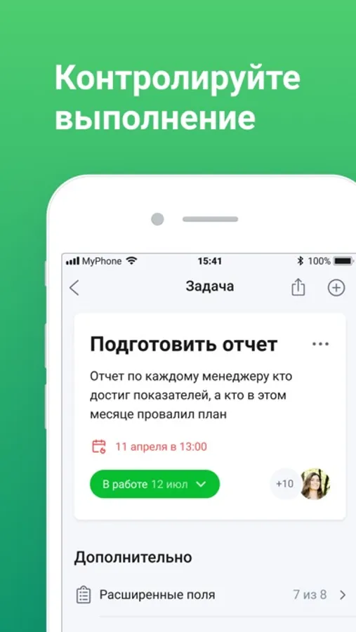 Мобильное приложение помогает планировать рабочий день, контролировать выполнение задач и проектов, отслеживать с телефона результаты сотрудников и все ключевые показатели. Держите руку на пульсе в дороге, дома или в командировке!