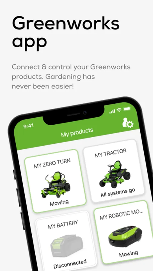 The official Greenworks app provides useful tools for connecting and communicating with Greenworks and Greenworks Pro Optimow robotic lawn mowers, ride-on mowers, batteries, and more. The app is packed with useful tools and functions. Overall, you can register products, get digital copies of your owners manuals and much more.