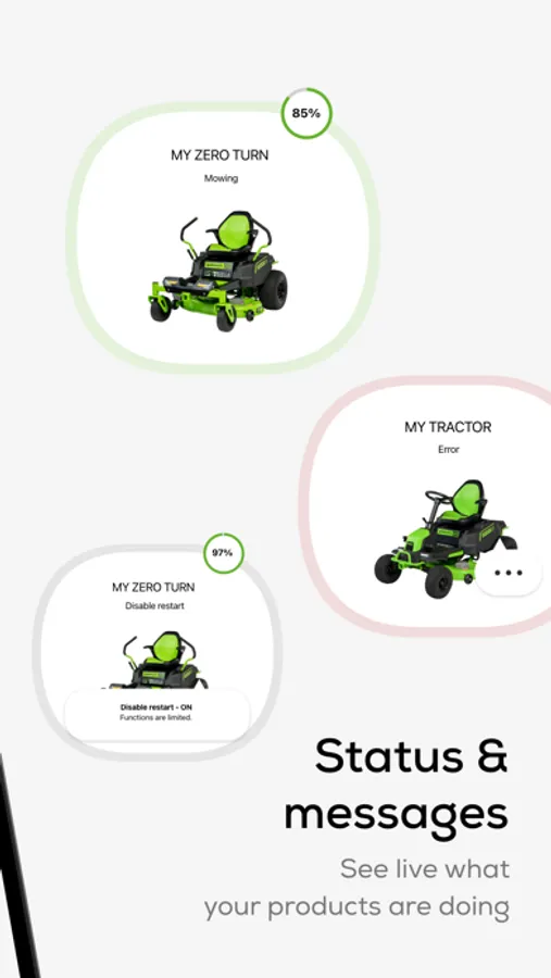 For residential ride-on mowers mowers, the Greenworks app lets you: