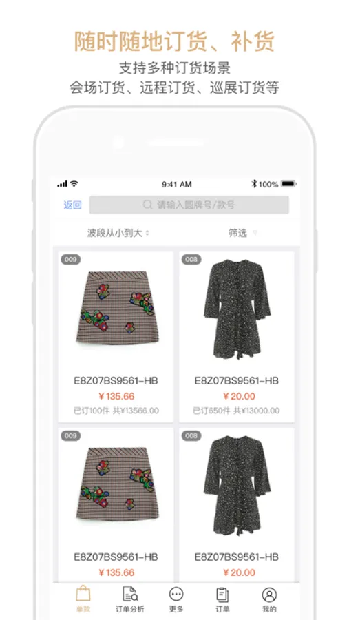 国内首款智能大数据订货系统,帮助传统服装企业快速转型升级,为品牌商与销售商之间提供随时随地订货/补货的方案,连续几年在业内积累了良好的口碑。