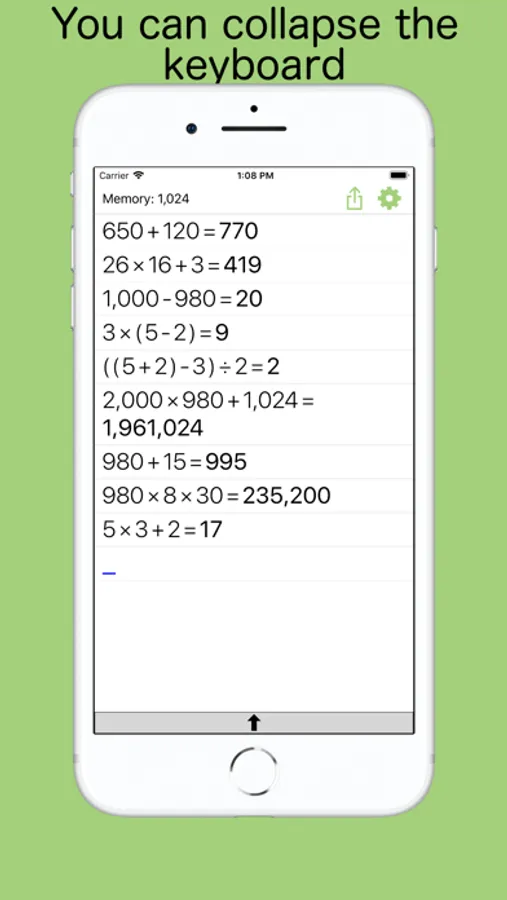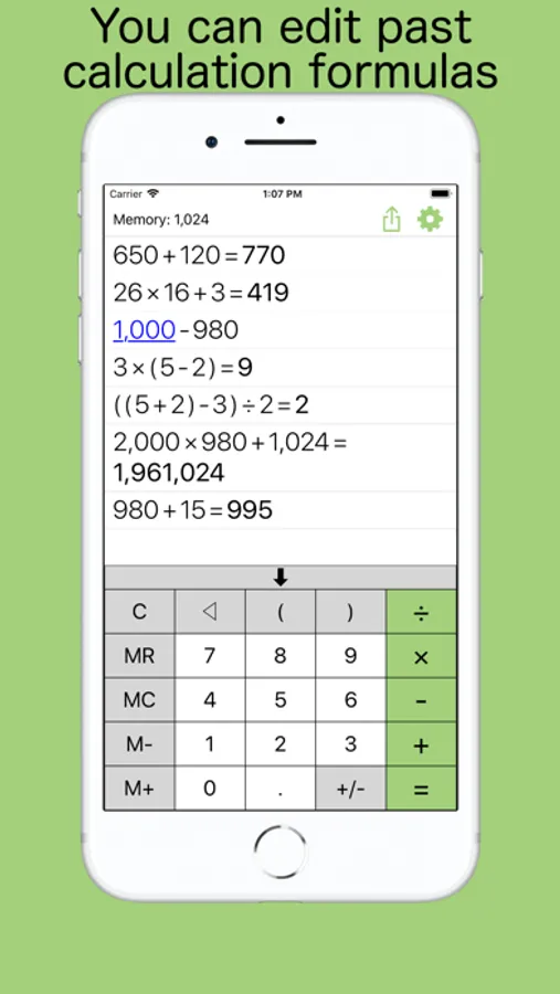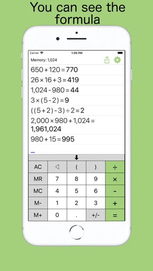 Since there is a sharing function, you can output calculation formulas and results to memos or send them by e-mail.