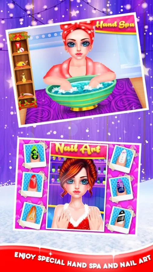 - Hand spa & Nail Art for girl having many options like nail polish, glitters, patterns & stickers