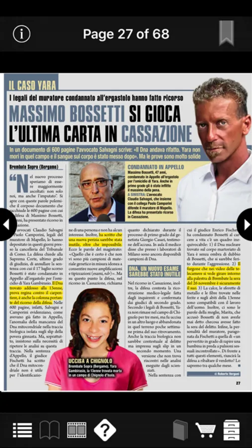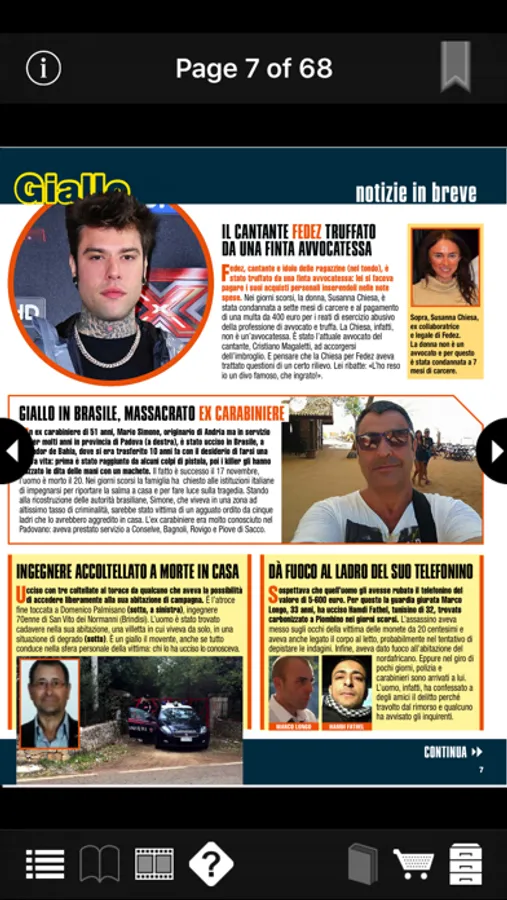 Market leader weekly magazine dealing with the most resounding cases in the news, ‘Giallo’ puts credibility at the core of its mission. This magazine does not rely neither on comments nor on opinions, but on the truth of the facts, with special reportages based on certain and verified news. It follows developments in the criminal investigations through authoritative sources and the frequent publication of court proceedings. When it allows room for the opinions, ‘Giallo’ draws on the columns of leading Italian experts, such as the criminologist Roberta Bruzzone, the former police director and writer Michele Giuttari, as well as the psychiatrist Vera Slepoj. But ‘Giallo’ is not limited to simple news. It also launches crime prevention campaigns. Following to the successful campaign aimed at the introduction of the crime of road homicide, it is spearheading the battle against femicide. A special coupon which can be filled and sent by the readers is published inside the magazine every week. By virtue of its complete accuracy, ‘Giallo’ is the most frequently quoted source on the internet.