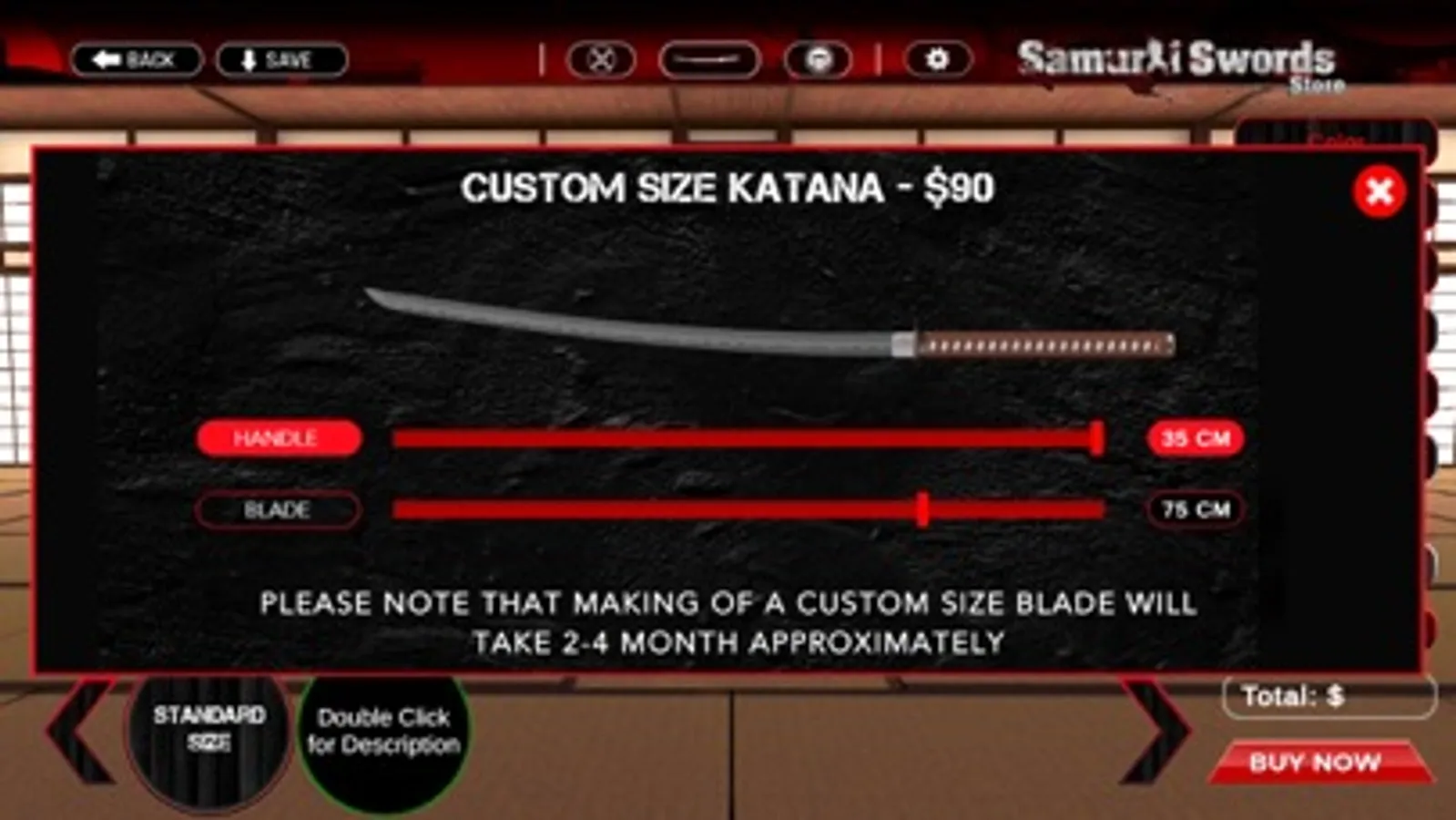 Your journey as a modern-day Samurai begins now. Download and wield the power to create a legacy with your very own custom Katana or any other Samurai sword.