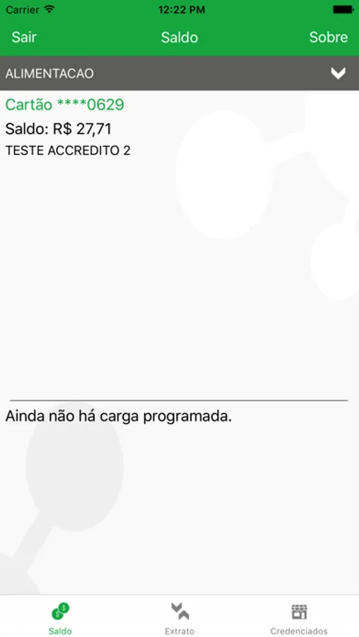 Aplicativo para consulta de saldo, extrato de movimentação e consulta a rede credenciada.