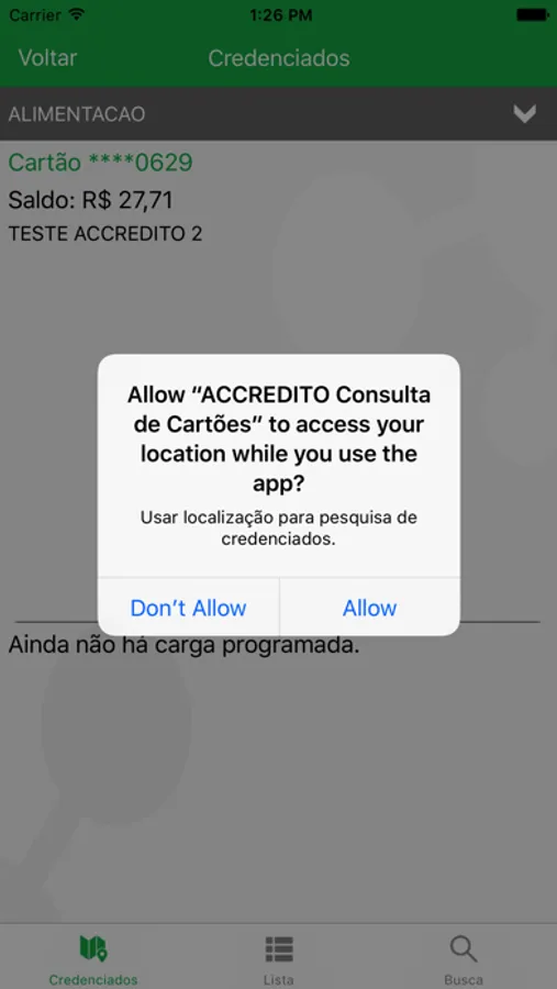 - Indicação em mapa, dos estabelecimentos geograficamente mais próximos, onde o cartão é aceito.