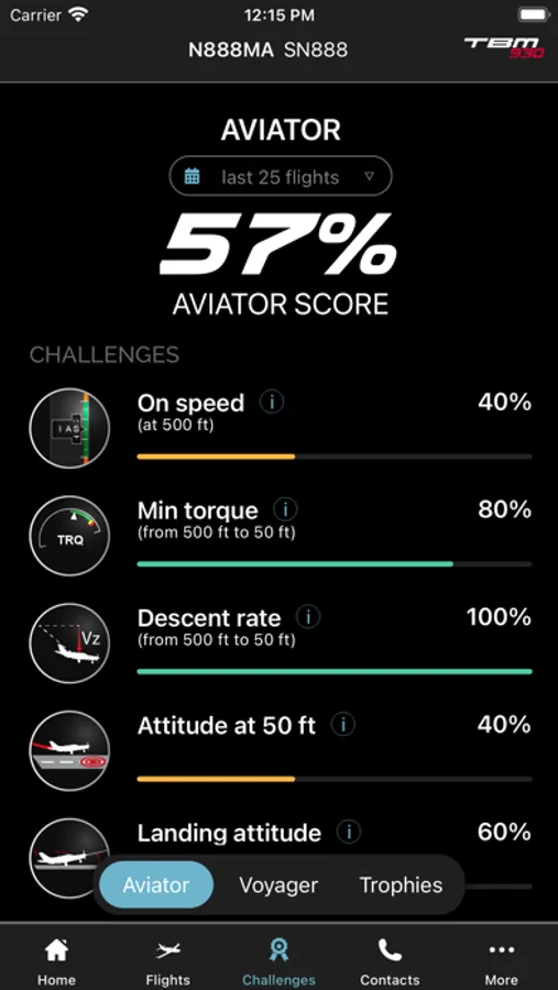 3. My TBM Challenge: Multiple factors are taken into account by the app in determining points that count for the My TBM Challenge. They include: new airports that have been visited, whether the landing approach was stabilized, the level of fuel efficiency during a flight…and more. Points will be awarded as the challenges are achieved.