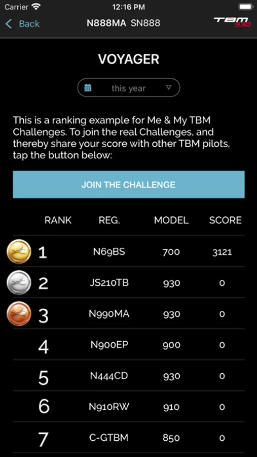 4. Ranking: TBM pilots can compete against other pilots based on the ranking of points.