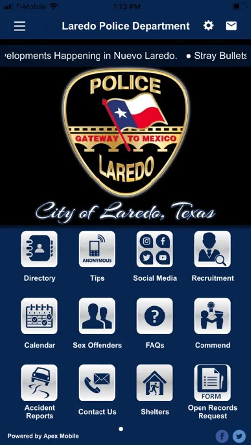 The Laredo PD app provides citizens the ability to submit anonymous tips to the Laredo, TX Police Department. The app also displays agency crime alerts, and other organization web and social media content.