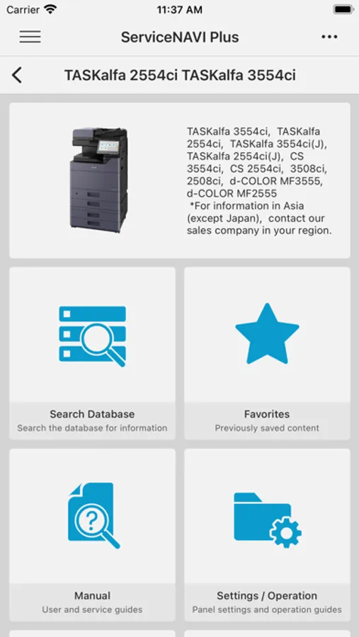 ServiceNAVI Plus is an app to assist the service technicians how to fix the device issues arisen on the KYOCERA MFP models, and also reduce the service time at the customer site.