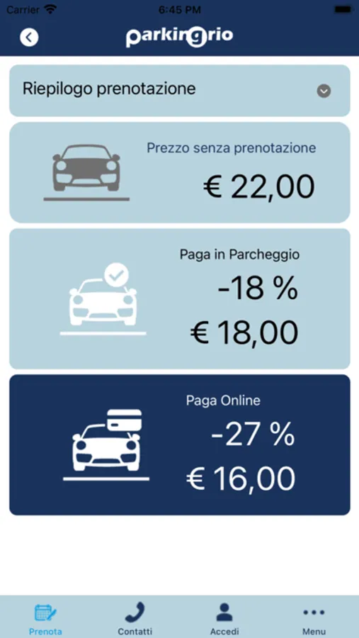 The APP allows you to make a reservation online without obligation, the payment will be made ONLY at the time of delivery of the car.