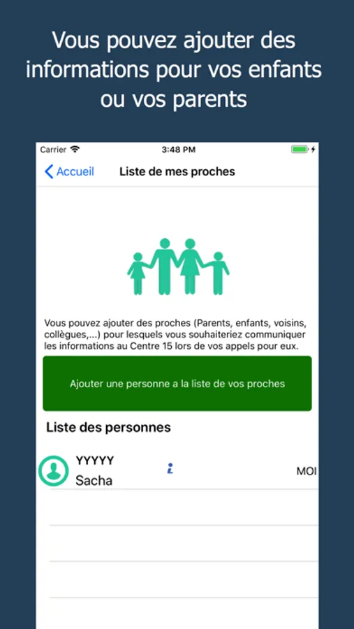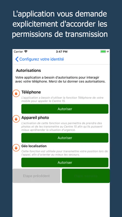 Toutes les données personnelles sont résidentes sur votre mobile et ne seront traitées que par le Centre 15 pour constituer le dossier relatif à votre appel.