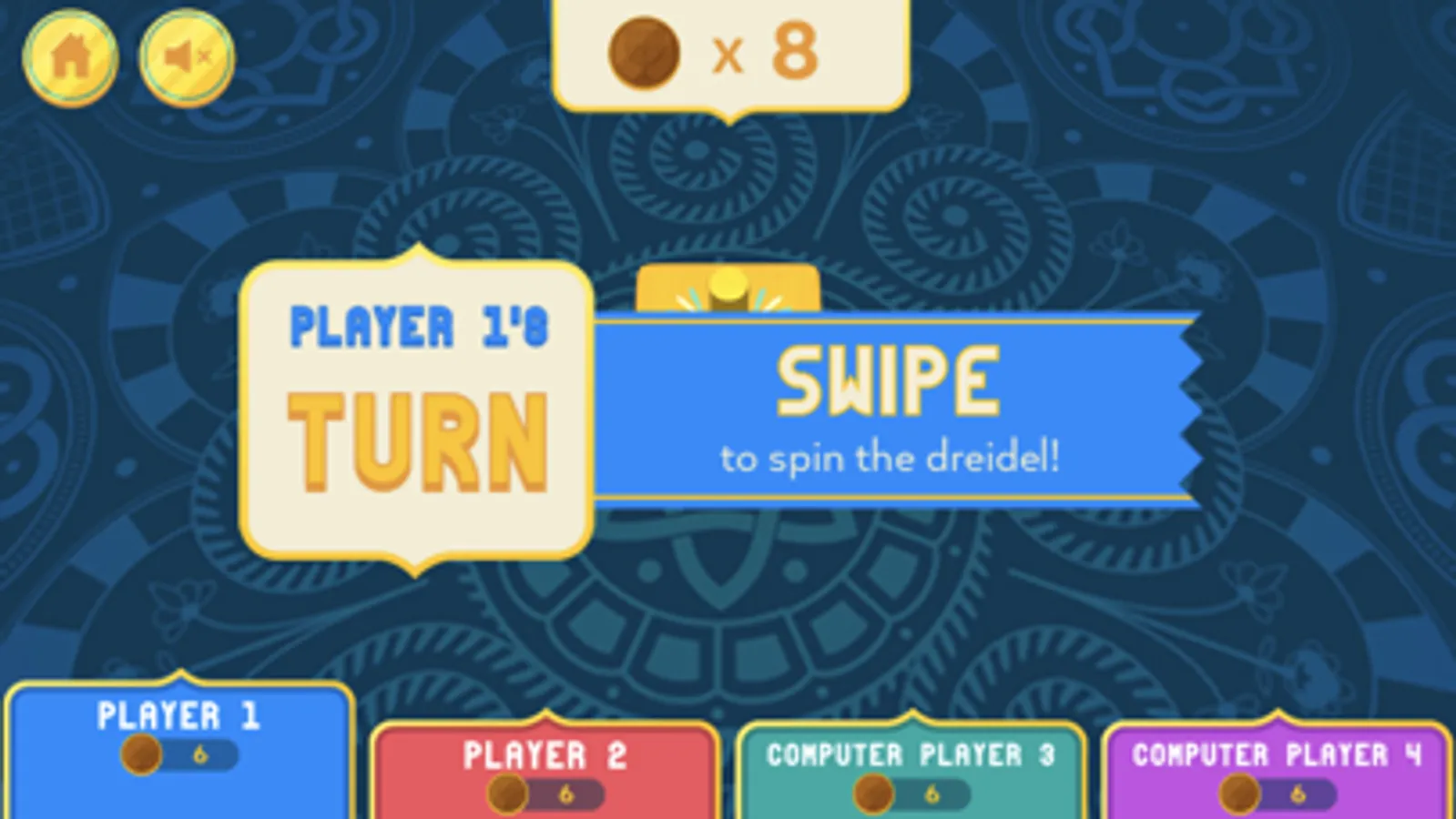 Happy Hanukkah! Celebrate this season of lights with the traditional Jewish game of Dreidel. Groups of up to four friends can play together, or single players can compete against the computer. In order to win, be the last player to have gelt!
