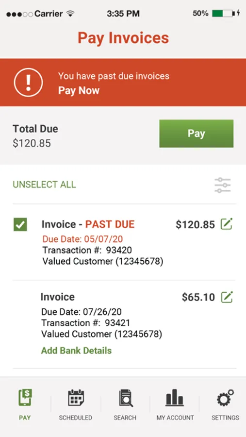 The My Account app helps you manage your US Foods account at all times. Conveniently review and share your invoices and access up to date account status information at any time. It's also easy to find your open invoices, quickly make a payment, or viewing your payment history.