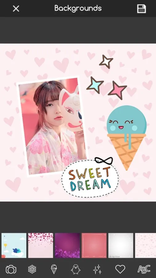 Kawaii Photo Editor is a collection of unique Kawaii stickers that will make your pics better than ever. The romantic Kawaii Cute enables you to combine your pictures with cute girly stickers. A huge collection of yummy cupcakes, ice cream, rabbits, cat face and unicorns in the best photo sticker app is waiting for you!