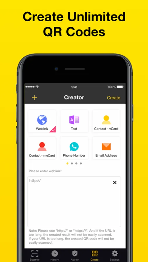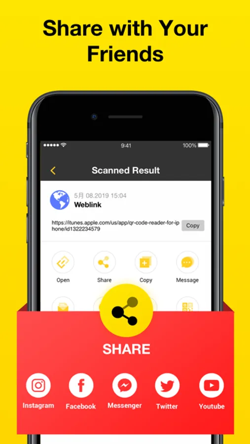 QR Reader app helps you create unlimited QR codes, such as Weblink, text, vcard, phone number, email adress, SMS, WIFI, Geo Location and Calendar, etc. You can share QR code reader and scanner results via WhatsApp, Facebook, Twitter, Gmail, WeChat, Line, E-mail, SMS, etc.