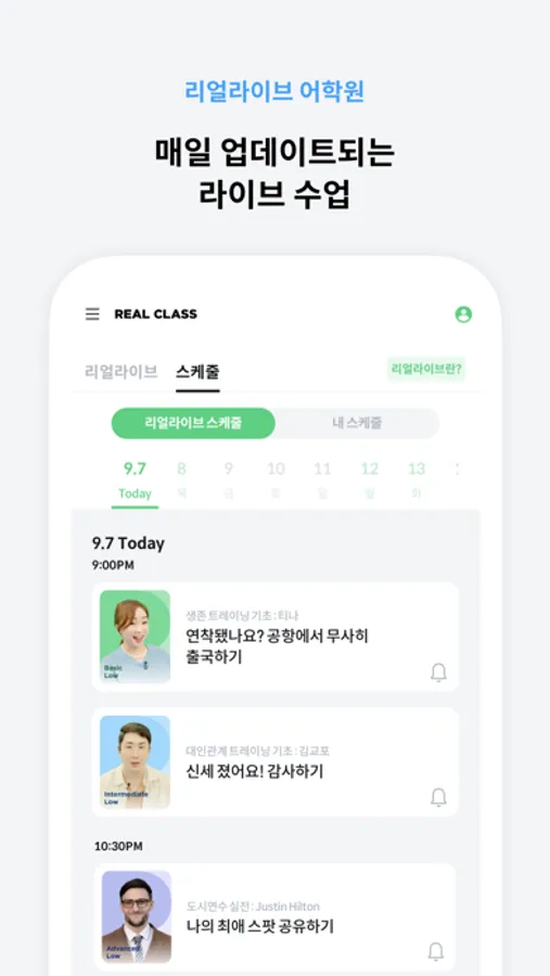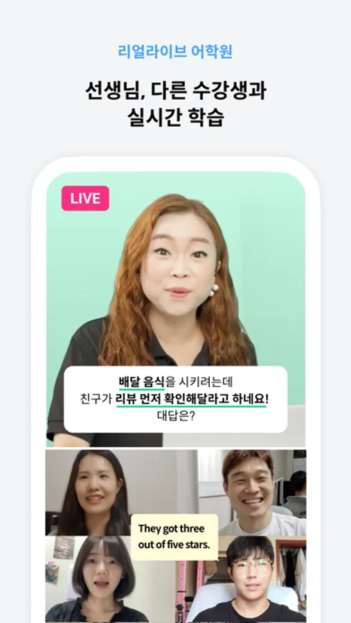 - 내 레벨에 맞는 라이브 수업에서 실시간으로 학습해요.