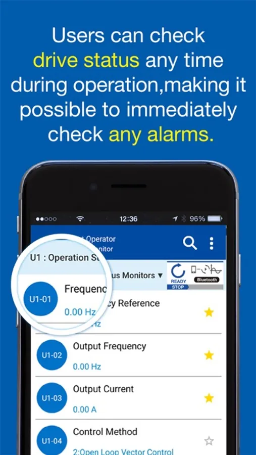 ● Edit parameters, operate the drive and monitor the drive condition in real-time by connecting the drive via Bluetooth.(See notes 1 )