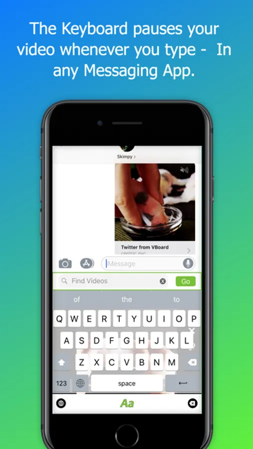 VBoard. is a new keyboard that enables you to search for and stream videos from social and video networks, then add them to your conversations on any messaging or social application. Best of all, VBoard. lets you find or browse and preview videos straight from the keyboard before sending and plays the vides in the message!