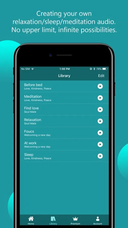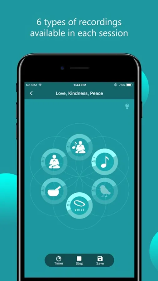 •Available types of recordings in each session: Guided meditation/Affirmation, Instrumental music, Meditation music, Angel voices, Tibetan bowls and Nature sounds